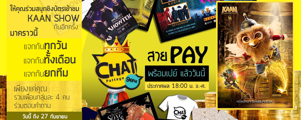 CHAT FM ให้คุณร่วมสนุกชิงบัตรเข้าชม KAAN SHOW กันอีกครั้ง มาคราวนี้ แจกกันทุกวัน ! แจกกันทั้งเดือน !! แจกกันทั้งทีม !!!